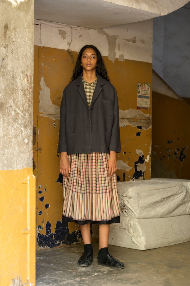 Gayle Reversible Skirt in Red Charcoal Check