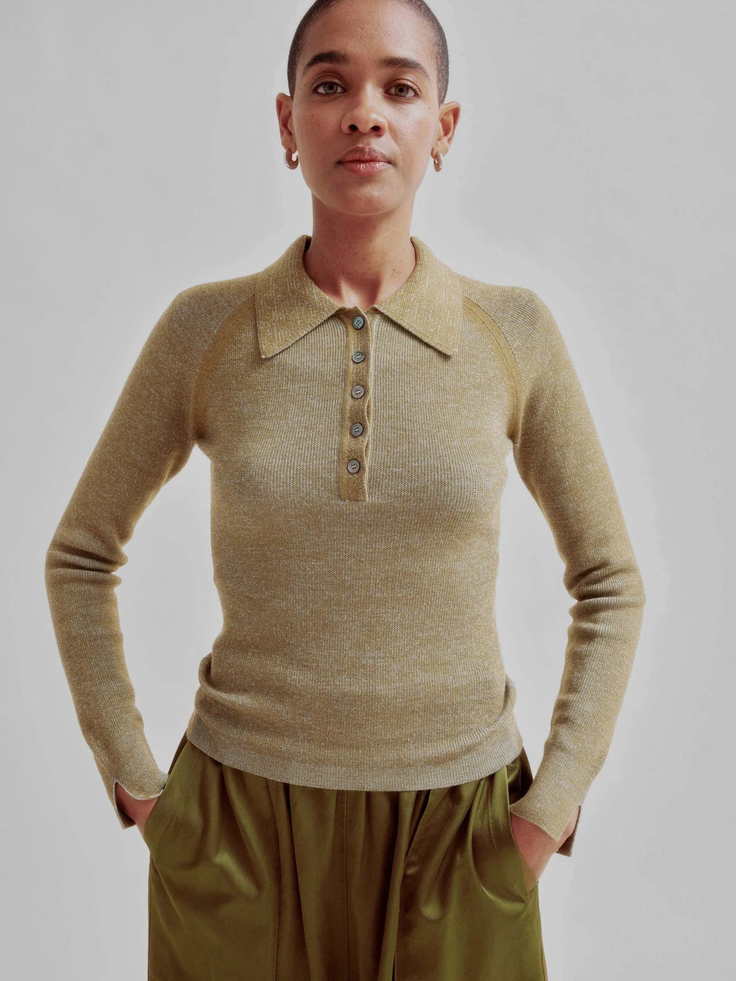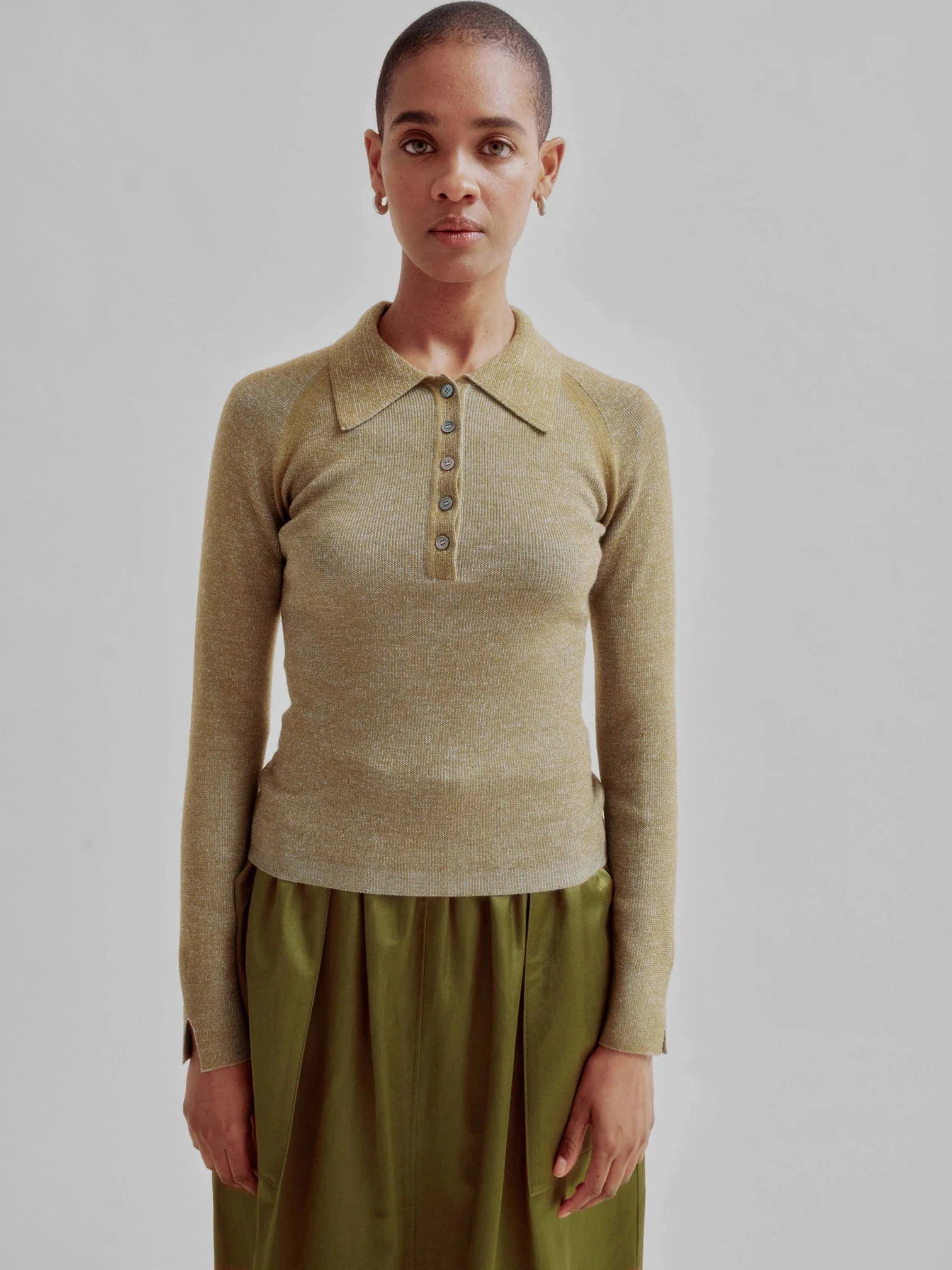 Sayaka Davis Combo Ribbed Polo in Pickle x Sky Blue in XS