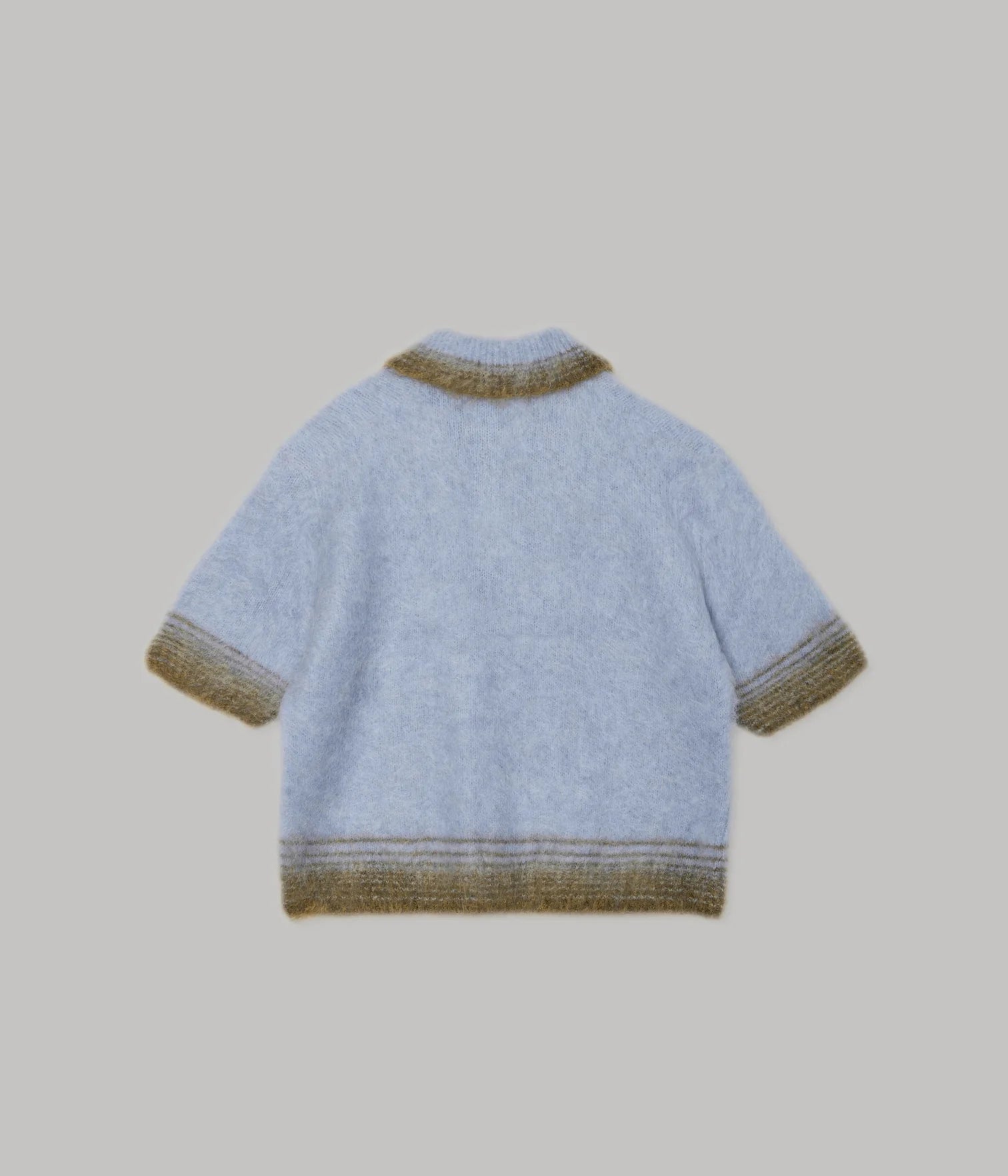 Sayaka Davis Compact Knit Polo in Baby Blue X Green in XS